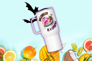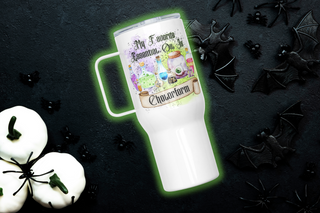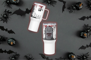 Stressed, Blessed, Halloween Obsessed Travel mug with a handle